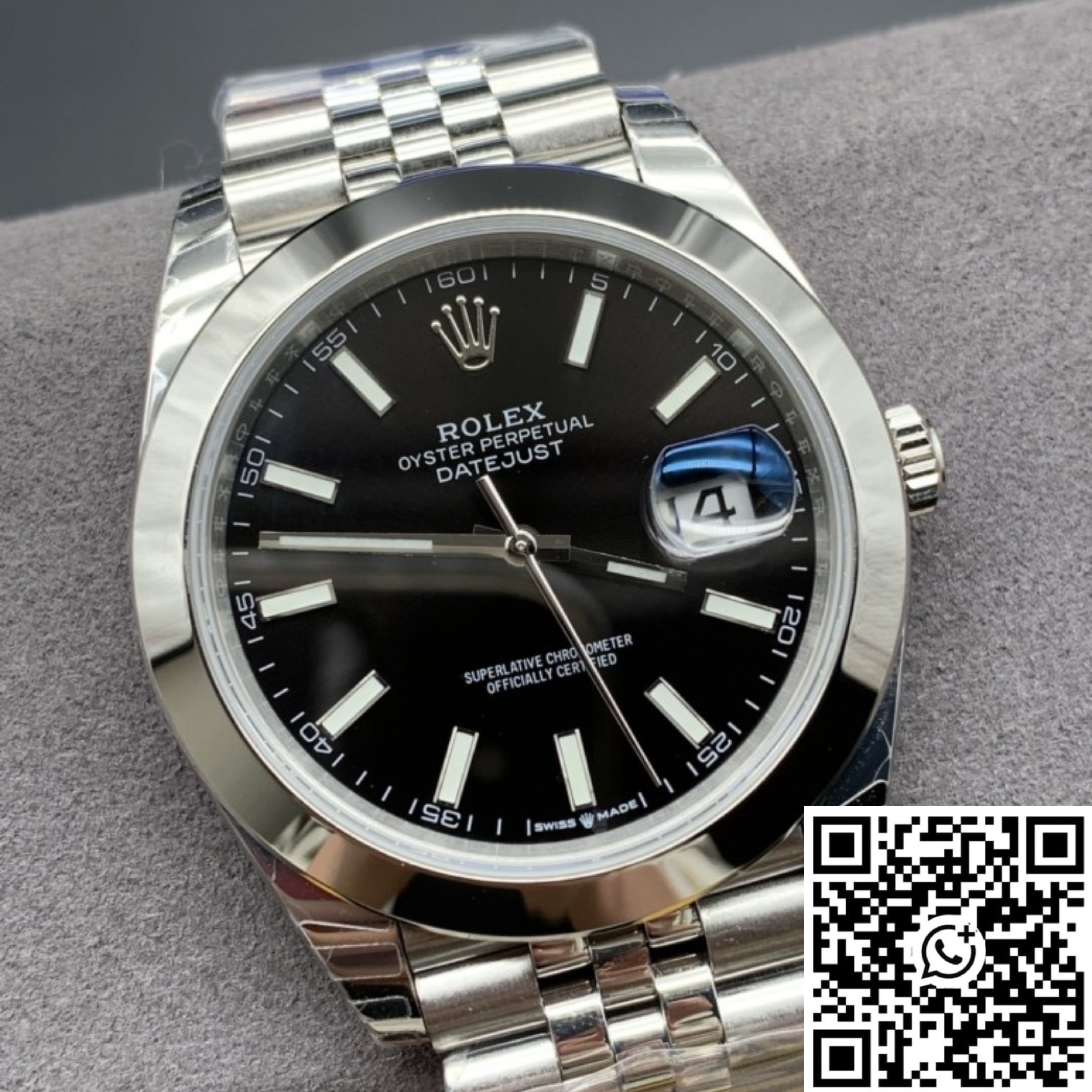 Rolex Datejust 41 Black Dial Jubilee – Ref. M126300-0012 Réplica Suiza 1:1 en acero 904L (Oystersteel) — bisel liso, pulsera Jubilee