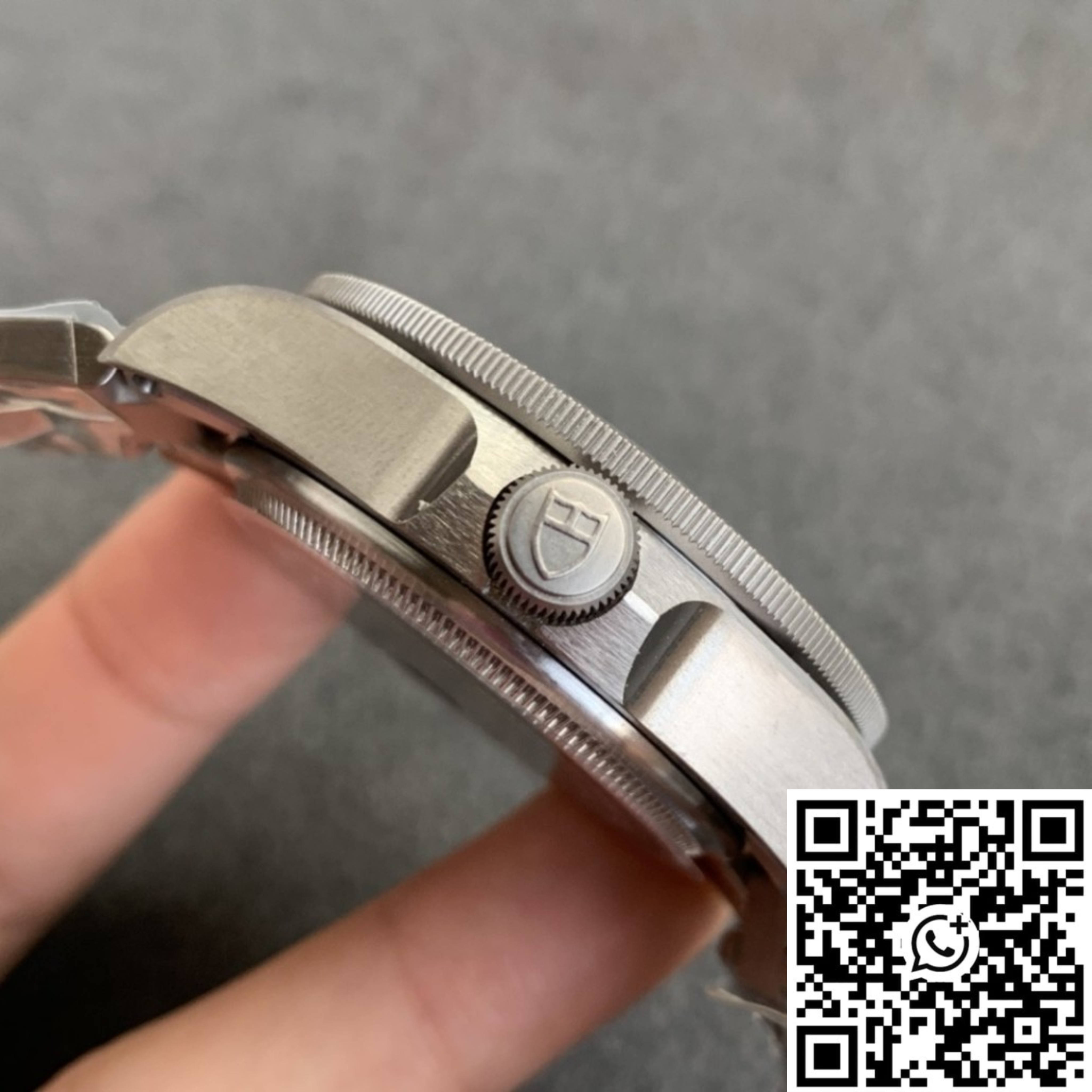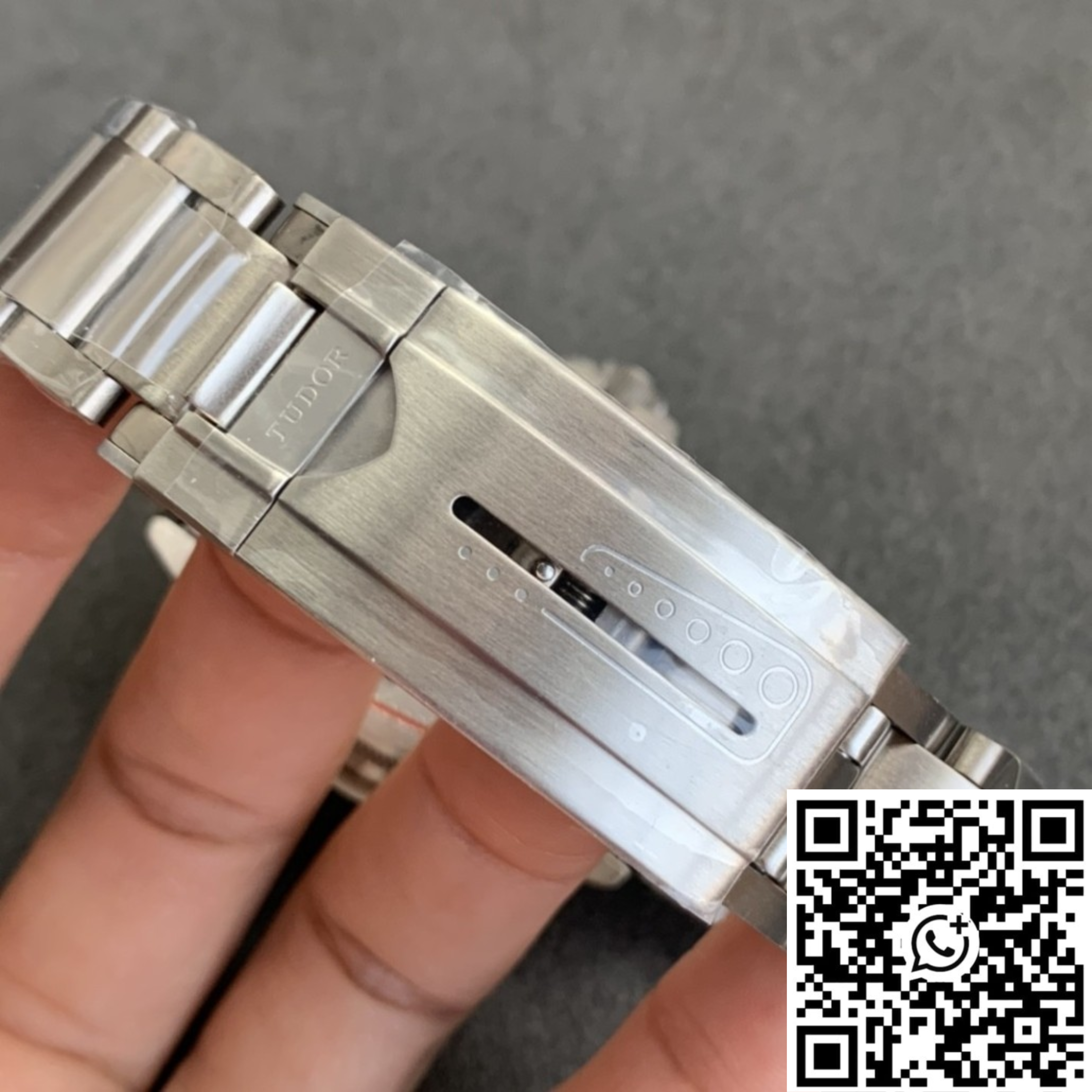 - Corona: Titanio con logo Tudor en relieve, rosca de seguridad + válvula de escape de helio a las 9
